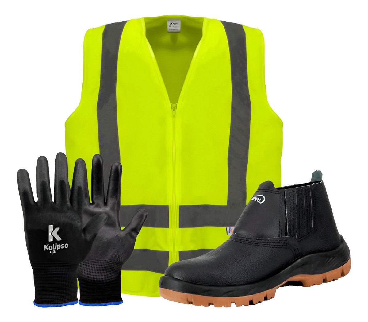 Invista em um kit completo de segurança com colete refletivo, luva de proteção e botina em couro, e garanta profissionalismo, segurança e visibilidade em qualquer jornada de trabalho.
